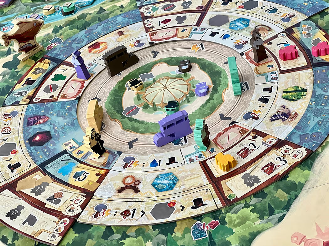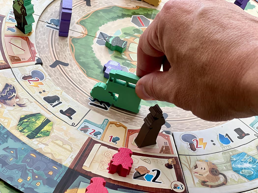 Wenn du in Daitoshi am Zug bist, produzierst du entweder oder bewegst deinen Magnaten in einen neuen Bezirk, in dem du deine Arbeiter zur Arbeit schicken kannst, du befiehlst die Ausbeutung von Wald- oder Flussfeldern, um deinen endlosen Bedarf an Dampf zu decken, und du führst eine Aktion aus, um zu expandieren und der Stadt deine Größe zu zeigen.