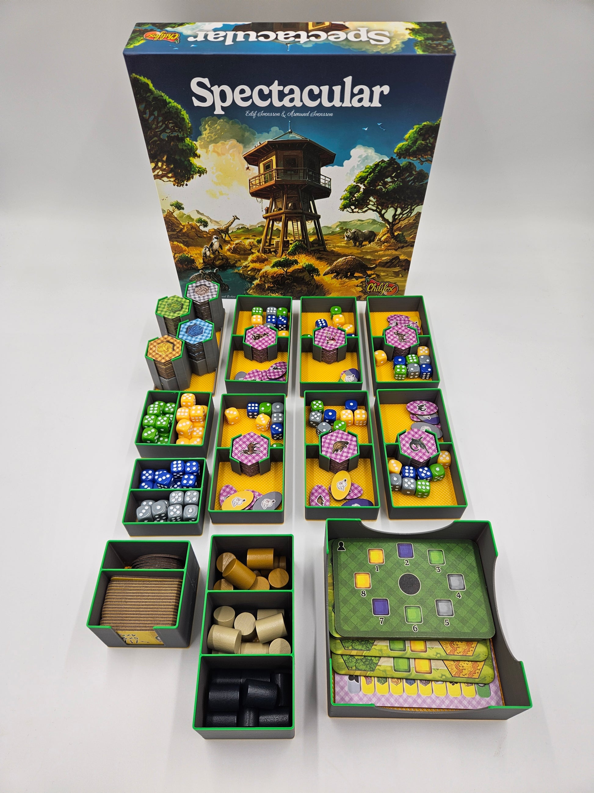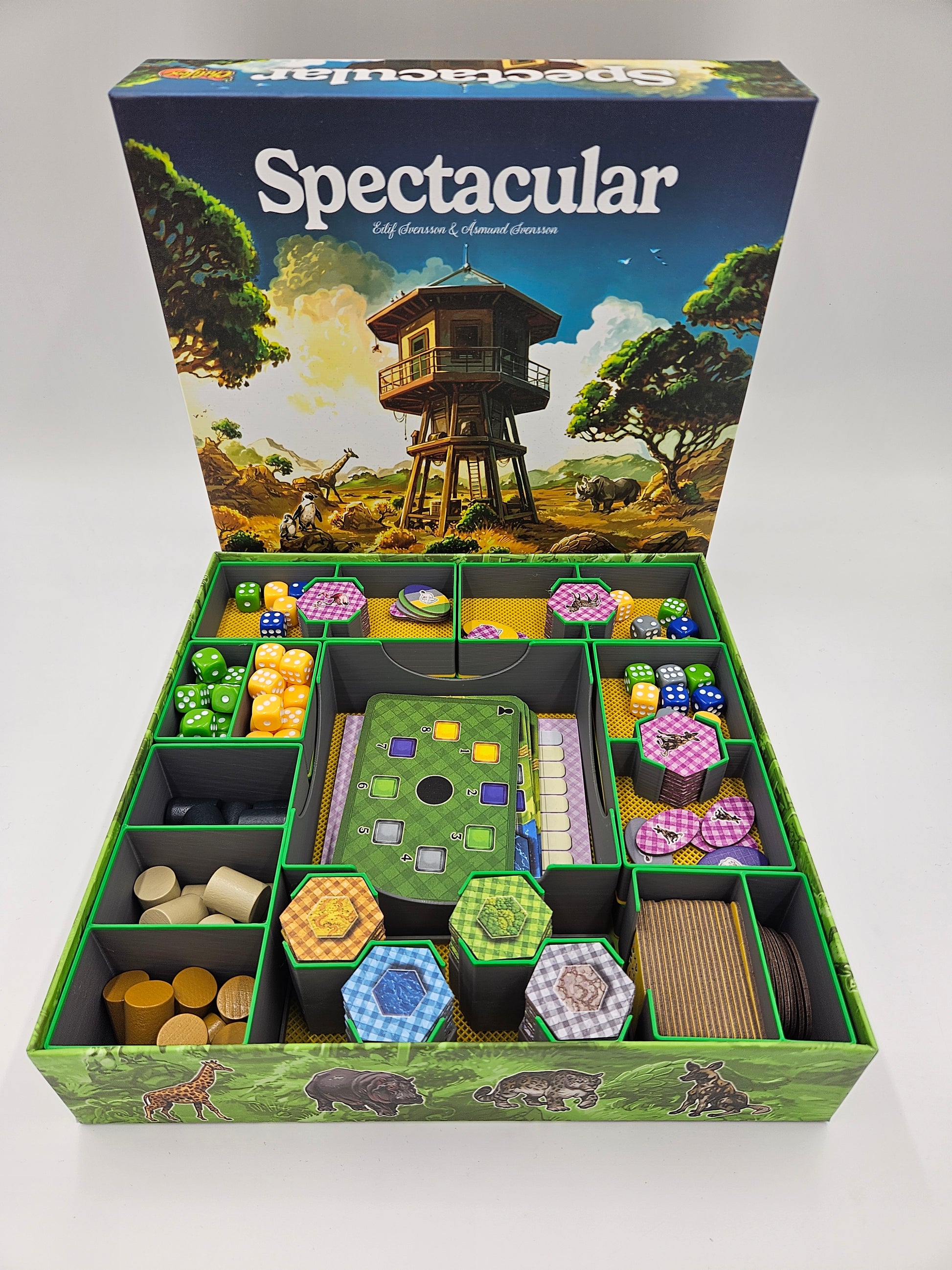 Mit unserem Insert für "Spektakulär" könnt ihr nicht nur eurer Spielmaterial ordentlich verstauen, sondern ihr spart euch auch kostbare Zeit beim Auf und Abbauen, dass ihr mehr von eurem Spieleabend habt.