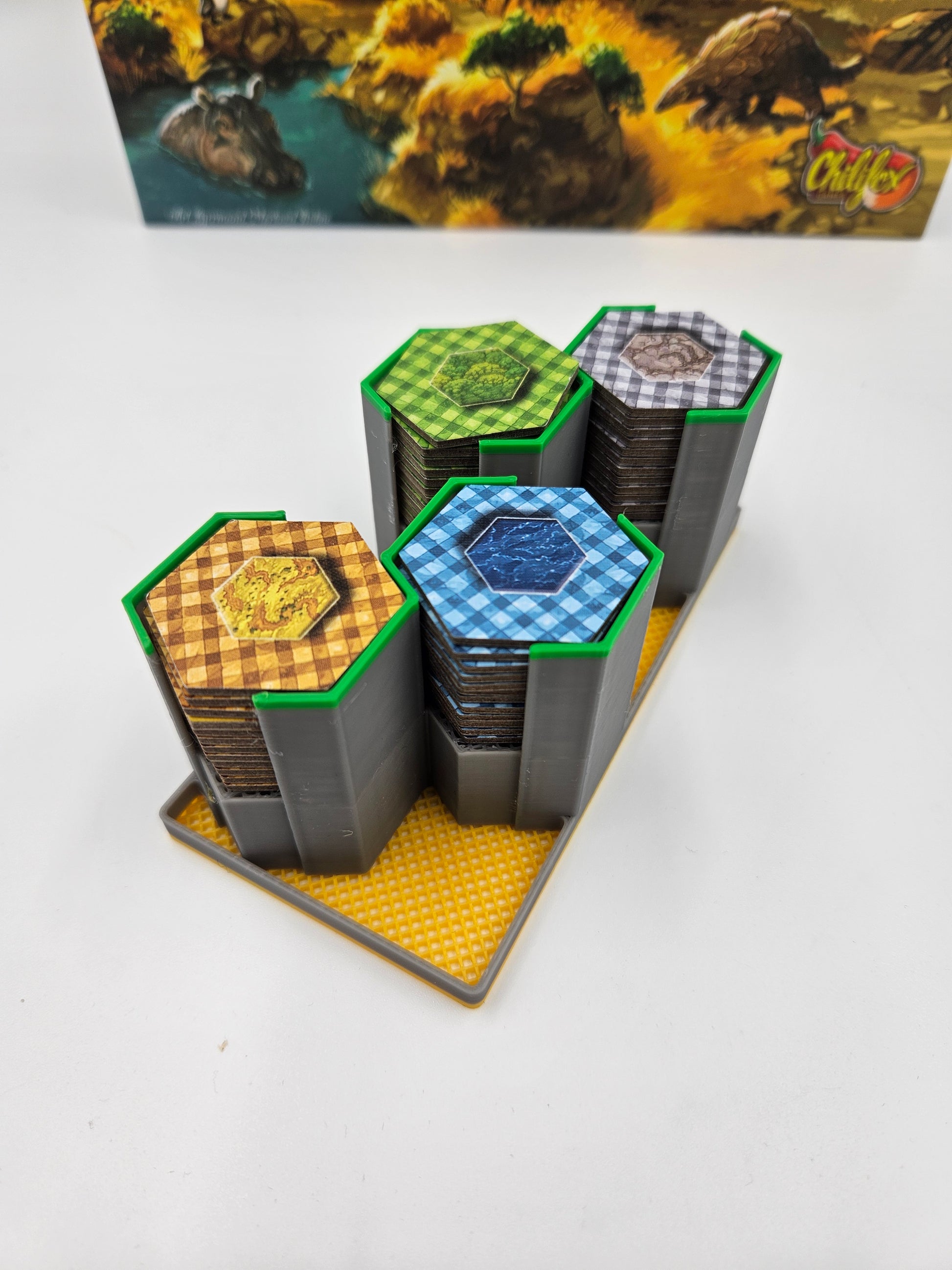 Durch den Praktischen Halter für die die Plättchen, müsst ihr euch nicht mehr mit umfallenden Stapeln und Chaos am Tisch rumärgern.